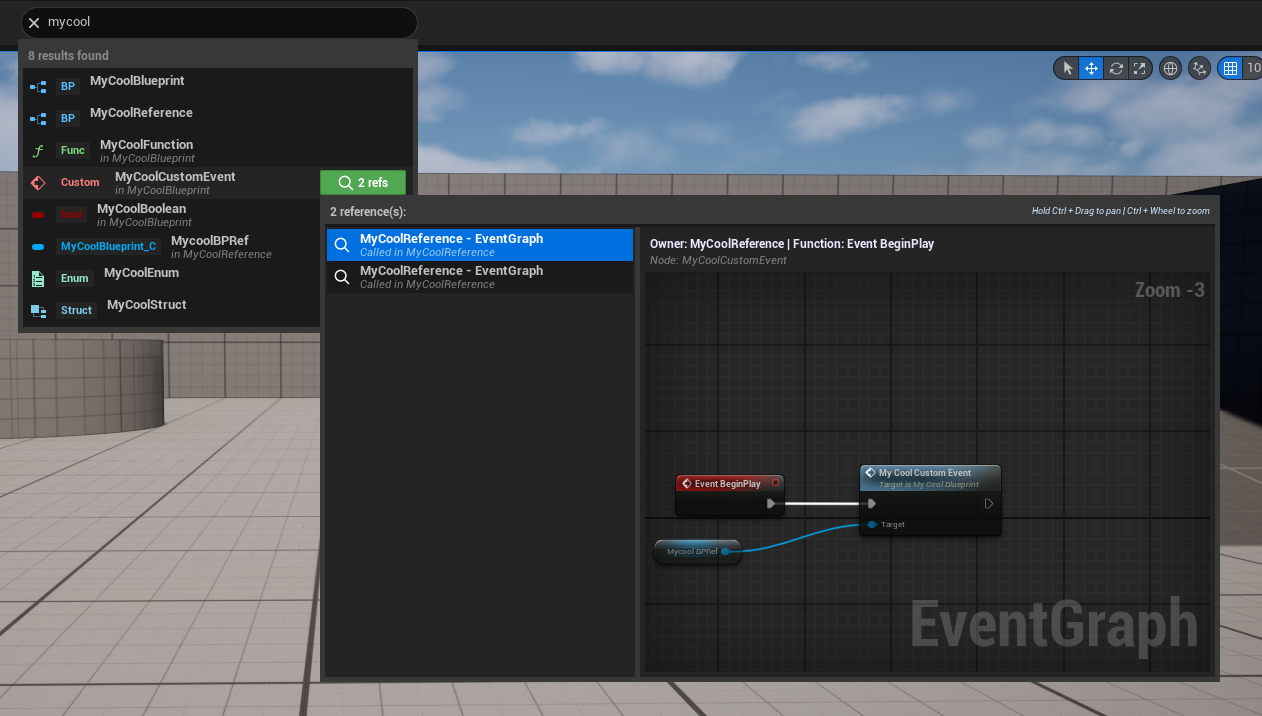 - Indexación profunda de elementos de Blueprint (variables, funciones, eventos, macros)